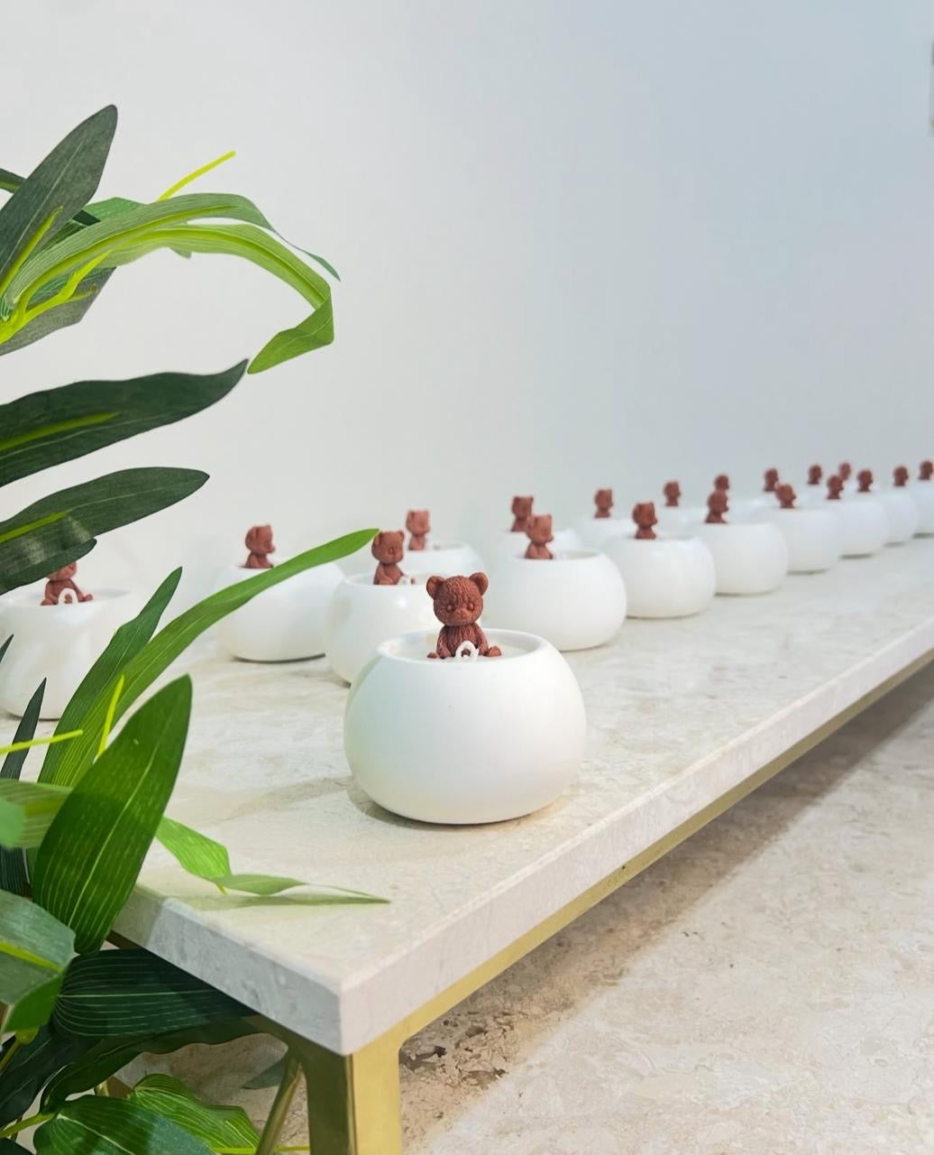 Candle with a small teddy bear, commonly used for baby favors, candle can be ordered without the teddy bear.