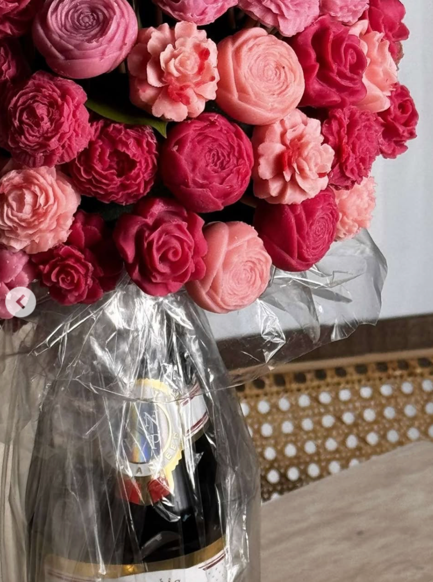 New Vimto bottle covered with wax flowers, perfect for Ramadan gifts.